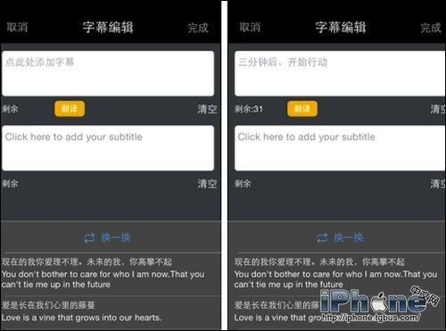 橫屏模式會有提示,這類照片最好選擇橫向圖片,豎拍照片不好截圖。選擇照片後裁切自己想要的效果選擇下一步,加上自己想說的文字即可。但是要特別說明下,下面的英文翻譯看看就好,有時候會出現搞笑版漢語拼音式翻譯,很是有趣,還有日語翻譯可以選擇。