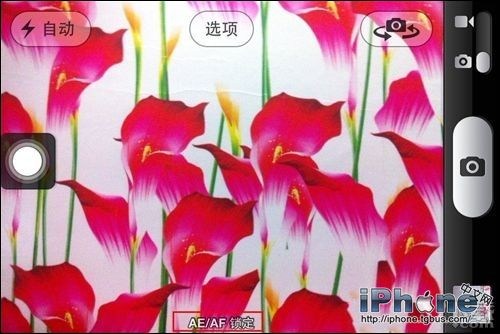 2.將iPhone放到需要虛化的背景前7~20厘米,長按屏幕然後放開,這時會看到AE/AF Lock字樣出現在屏幕下面(如果對7-10cm的距離沒概念的話,大約是半個手掌那麼長就行了)。