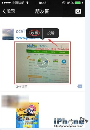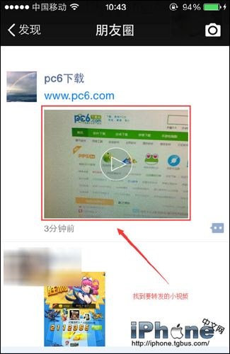 2.接下來在朋友圈中,浏覽到的小視頻,不管是你自己發的,還是好友發的小視頻,都要先等視頻加載完後才能操作。