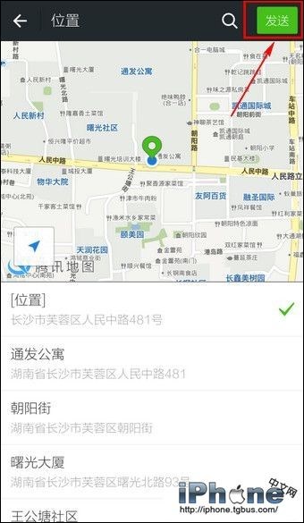 5.若要分享位置,點擊右上角【發送】即可。