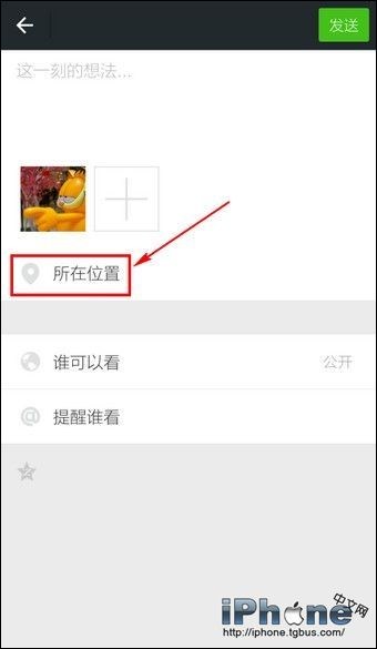 1.進入朋友圈發動態界面,點擊【所在位置】。