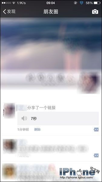 5.返回到朋友圈就可以看到發表的語音啦。