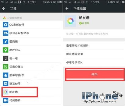 3、最後在“功能”裡面找到【朋友圈】,點開朋友圈,可以看到“停用”的按鈕,選擇停用就可以了,如下圖所示。