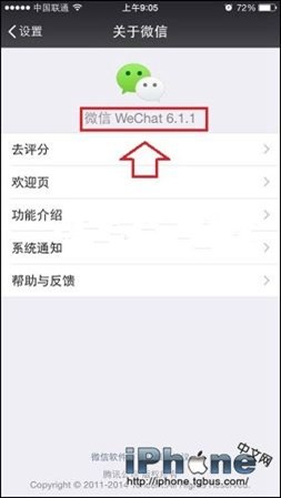 2、在關於微信界面,就可以看到微信版本了,比如小編目前的微信版本是6.1.1,屬於最新版本。