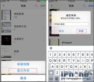 1、長按相冊左上角的“+”號來創建新的文件夾,為文件夾起個名字。