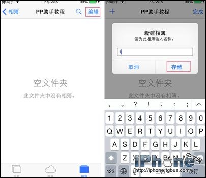 2、進入到文件夾內,點擊右上角的“編輯”後,在點解左上角的“+”,在文件夾內創建相冊。
