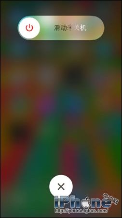 1、如果遇到iPhone假死的情況,長按電源鍵(iPhone4和iphone5都在手機頂部,iPhone6在手機右上部),出現如下關機畫面。