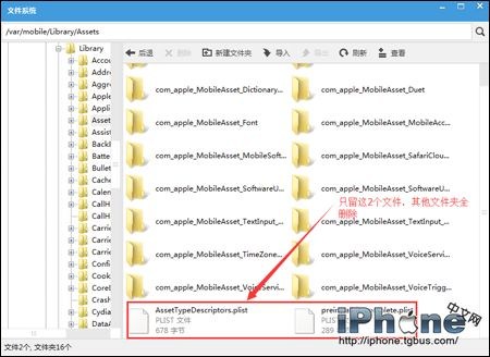 已越獄的小伙伴請訪問路徑/var/mobile/library/assets,刪除圖片上圈出的文件 不用擔心只是一些緩存文件~一下內存少了快2G(很多小白已測試,絕對安全,不放心可先備份),還有一點需要注意,刪除了之後siri就沒聲音的,不用siri的人可以試一下,方法不可逆,建議刪前備份。