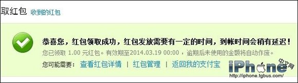 以上全部就是今天小編和大家分享的支付寶紅包領取方法,非常的簡單,如果您還不清楚紅包怎麼領取的話可以通過本文來了解下,希望大家能如願搶到自己想要的紅包。