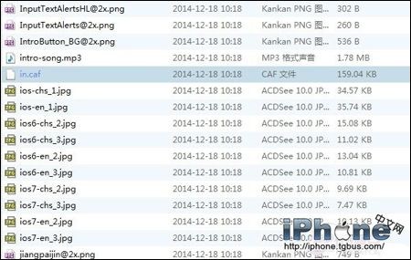 2、往下拖,在以“i”為開頭處找到【in.caf】這個文件,如果你想確認一下這個提示聲,可以雙擊試聽一下。如果你以後想恢復原提示音的話,可先將該文件備份。