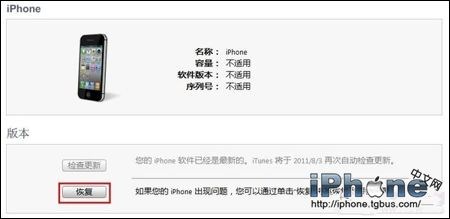 7、當你的手機在DFU模式的時候,可以打開iTunes了,點擊確定後就可以看到下面的這個畫面。