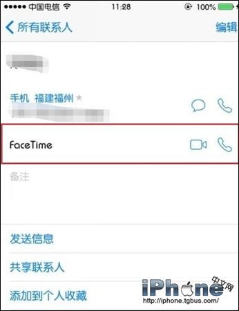 4、重啟手機後在聯系人詳細信息界面可以看到FaceTime Audio語音通話選項了,我們點擊電話圖標,就可以開啟語音通話了,在Wifi環境通話是免費的,如下圖所示。