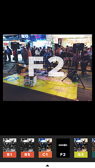 在相冊中點擊照片可選中照片,應用底部同時會出現操作按鈕,直接點擊其中的編輯按鈕就能進入濾鏡選擇的頁面。有趣的是,「VSCOcam」為濾鏡加上了編碼,在分享作品給他人的時候顯得尤為方便。