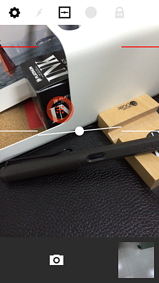 除了對焦與測光分離,「VSCAcam」相機還支持鎖定白平衡和添加取景參考線,另外還支持打開閃光燈取景。
