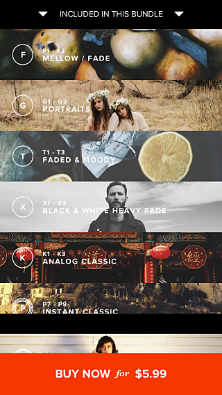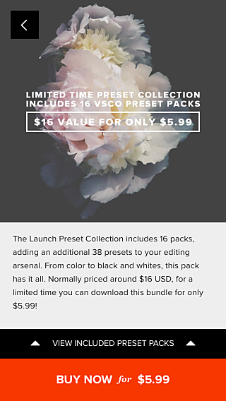 為了「刺激消費」,「VSCOcam」也推出了濾鏡包捆綁銷售的集合,相比一個個購買要便宜不少。