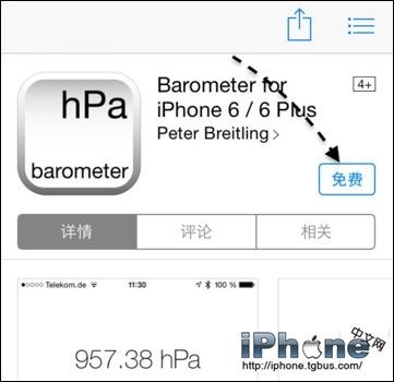 如果當前已經有了iPhone6的小伙伴,想要檢驗一下“氣壓計”的效果,可以前往 App Store 下載 Barometer for iPhone 6 / 6 Plus 這個應用軟件。