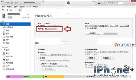 1、首先將iPhone6 Plus通過數據線連接電腦,然後打開電腦中已經安裝的iTunes工具,之後進入iTunes 手機信息主界面,就可以看到序列號了,如下圖所示。