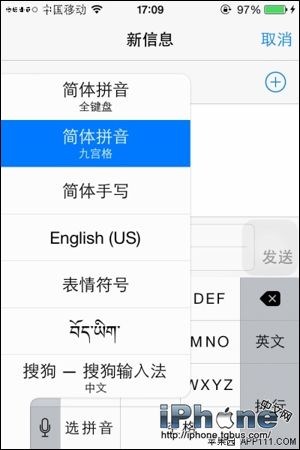 4、添加成功後,即可在鍵盤中看到“搜狗輸入法。在輸入字詞時,將輸入法切換至搜狗輸入法即可。