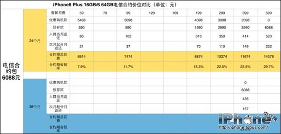 不過小編在此需要提醒大家一下,iPhone6電信合約機套餐具備實際購機款較少,但合約時間較長的特點,最短最短需要24個月綁定,也就需要綁定2年,大家請根據自己的實際需要來決定。