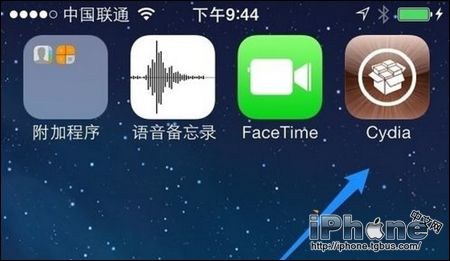 1.在越獄的蘋果5s主屏上打開 Cydia 越獄應用中。