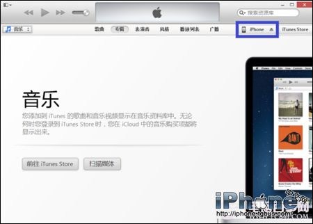 4、將iphone6用數據線連接插入電腦USB接口,並打開itunes軟件,等它與手機連接後,連接右上角的iphone,如圖;
