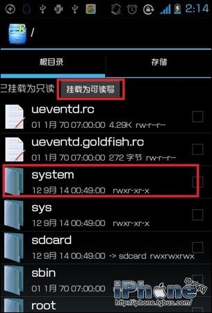 3、打開“Root Explorer”掛載為可讀寫,找到“System”打開。