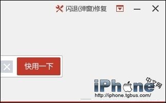 3、將你的手機連接電腦,打開快用蘋果助手右上角的“閃退(彈窗)修復”功能,如圖所示;