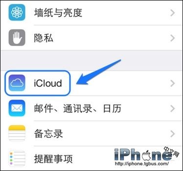 2、在設置列表中,找到“iCloud”選項,點擊進入。