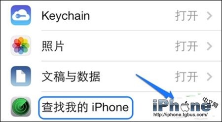 6、在 iCloud 的服務功能中,可以看到“查找我的iPhone”功能開關已經打開,如果我們嘗試要關閉它,點擊開關。