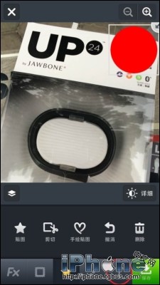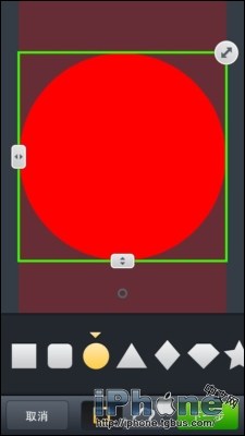 在剪切後,插入下圖的紅色圖片,並且用圓形剪切,調整大小後,放到屏幕的右上角。