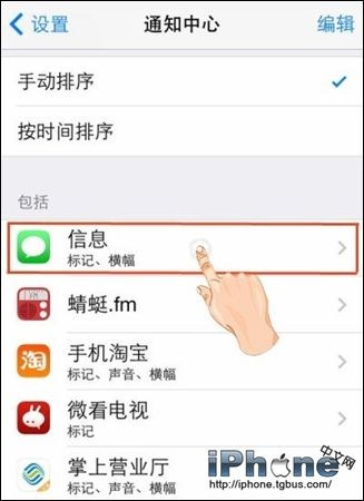 1、我們點擊“設置”應用後,進入“通知”選項頁面,選中“信息”選項。