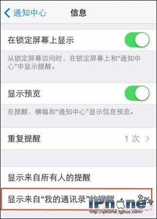 2、“信息”選項界面,我們進行勾選“顯示來自‘我的通訊錄’的提醒”即可。
