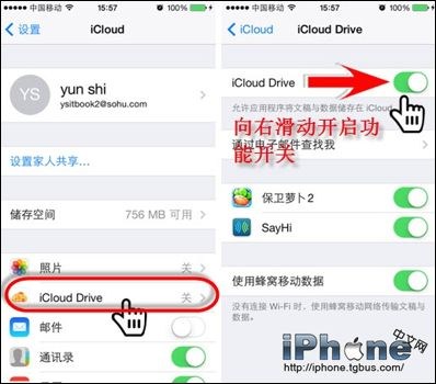 1、在“設置-iCloud”界面下,首先用自己的蘋果賬號登錄;然後點“iCloud Drive”選項進入。隨後開啟“iCloud Drive”功能開關。