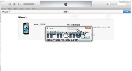 4、接下來電腦上的iTunes軟件會自動檢測到一台等待恢復的設備,我們點擊“確定”,如下圖所示: