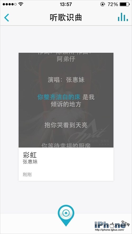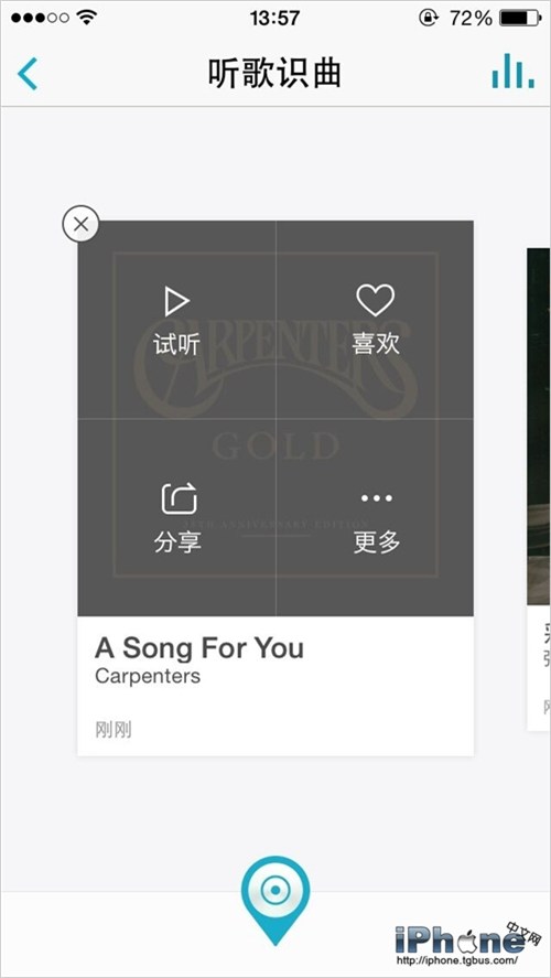 識別成功後,會自動彈出歌曲的名稱及信息、封面等等;