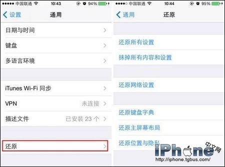 2、在“通用”選項頁面,我們找到“還原”選項,並且點擊進入。