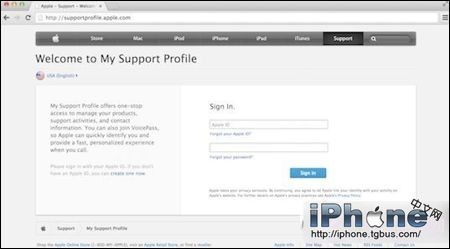 1、前往蘋果官方的My Support Profile頁面,使用你的Apple ID登錄。