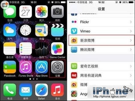 2、在手機的主界面,點擊“設置”,找到並進入“新浪微博”選項。