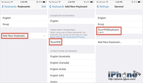 第三方輸入法和一般的應用一樣,都是在App Store下載並安裝,在安裝之後一樣會再主界面上出現其圖標。進入之後會有提示讓你在系統中加入該輸入法,而後再到設置中找到添加鍵盤一項,就可以將其添加進默認的輸入法行列中了。使用時,也只需要按鍵盤的地球按鈕就可以切換過去,和目前切換中英文鍵盤一樣。