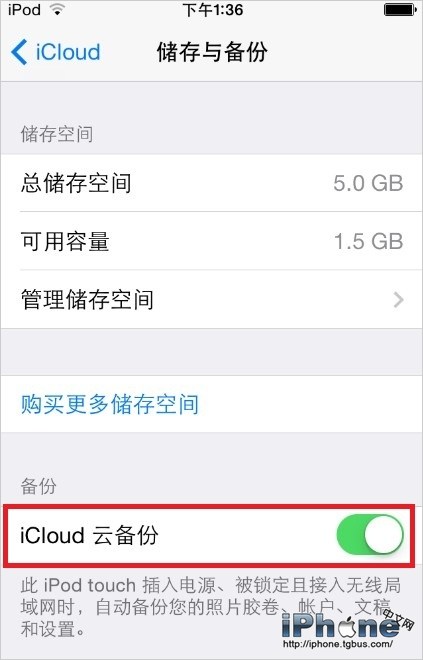 3.開啟“iCloud雲備份”後即可;