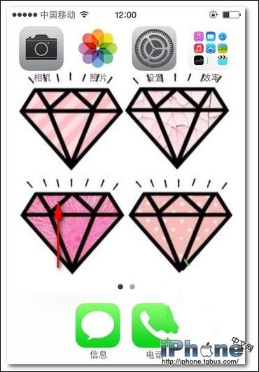1、進入iPhone5s主界面後,用手指觸摸從下往上滑屏,彈出底部的快捷操作菜單,如圖所示;