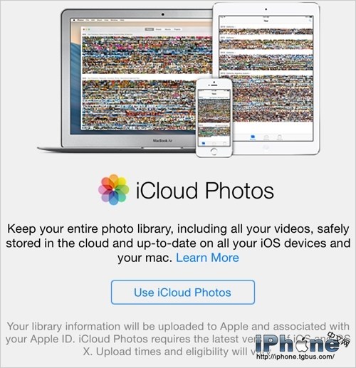 iCloud照片:當進入照片應用程序,會彈出一個新的“iCloud照片”,激活蘋果新的iCloud照片功能,取代現有的照片流設置。