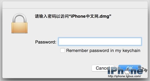 推出那個卷(拖動到Dock欄的廢紙簍),有人想打開密碼加密的dmg文件時,雙擊會出現上面截圖中的界面:Mac OS X系統要求你輸入密碼。OK,蘋果電腦上創建密碼加密文件的方法介紹完了