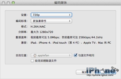 好消息是,蘋果電腦最新的 Mac OS X Mavericks系統自帶了視頻轉碼功能,不用安裝第三方軟件就能把視頻轉換成 h.264 編碼的 m4v 視頻了。視頻尺寸和編碼率可調,我試了 .mkv、.mov、.rmvb、.avi 視頻,都能轉換。