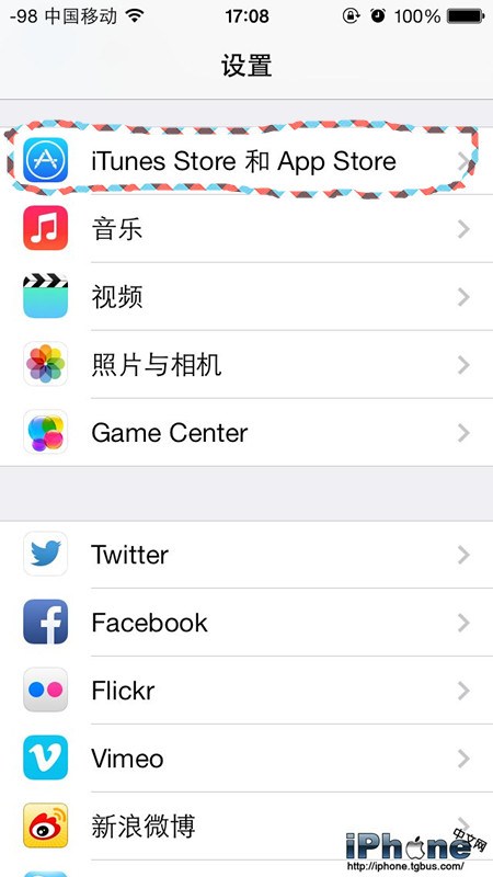 之後,下拉菜單點擊進入iTunes Store和APP Store這個選項;