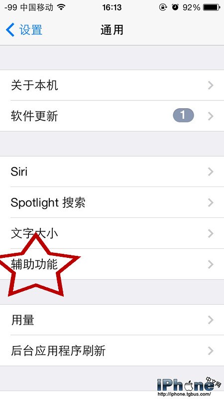 第二步:在【通用】中尋找【輔助選項】,點擊進入。