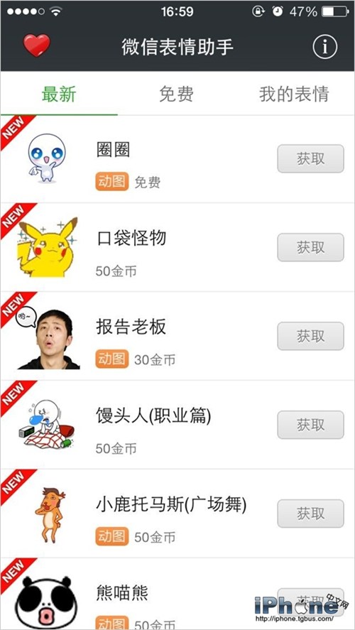點擊獲取自己喜愛的表情(金幣在上方有各種免費獲得方式);