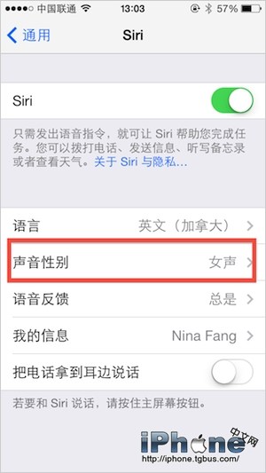 iOS 7發布後,Siri終於擺脫了Beta的尾巴,更大的提升了功能精准性。Siri 讓你能夠利用語音來完成發送信息、安排會議、撥打電話等更多事務。但是雖然蘋果盡可能的讓聲音聽起來自然,但長時間的聽一種聲音也難免會有些單調。 中文Siri發音仍沒有男女生的切換,但使用英文Siri的朋友們還是可以嘗試切換男女聲音體會一下不同的發音感覺。