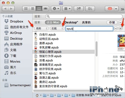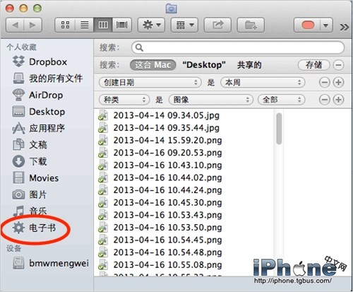 剛才建立那個集中電腦上所有電子書的智能文件夾,你已經能從 Finder 側邊欄看到了(紅圈標出的)。