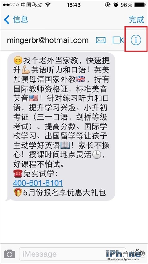 1.在“信息”中,點擊右上角的“聯系人”後,點擊“i”圖標;